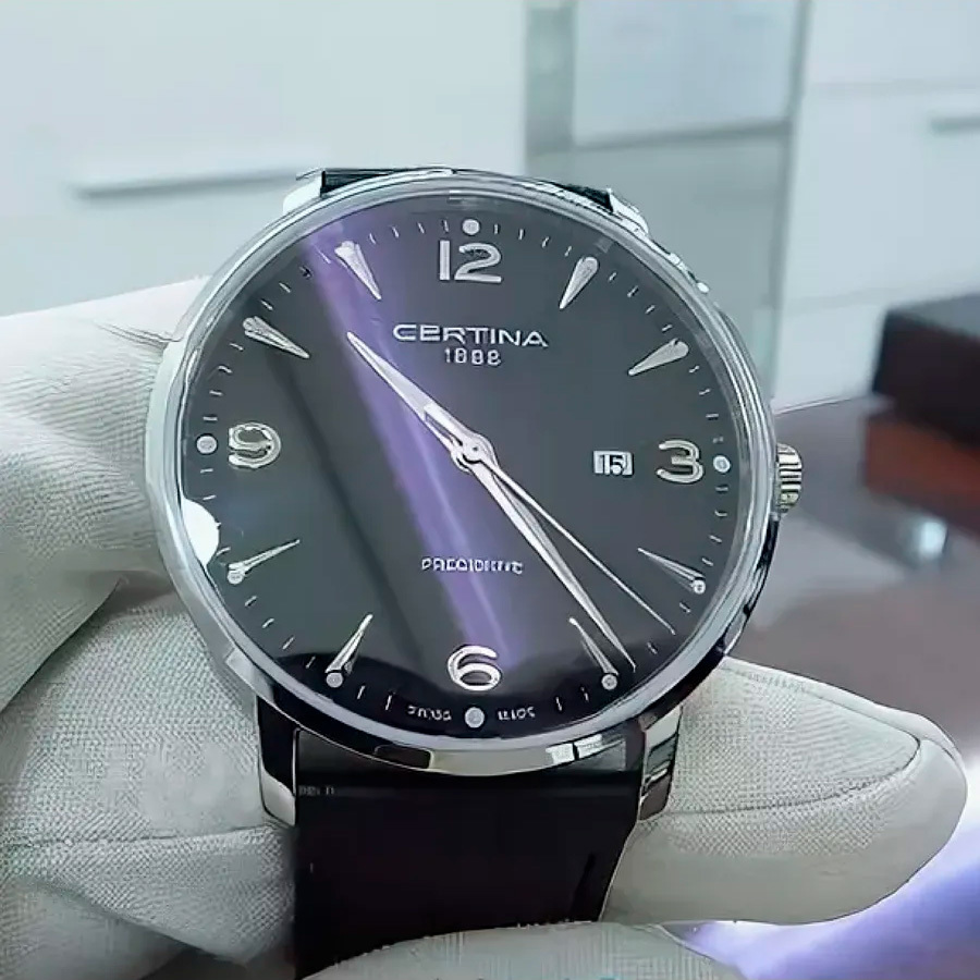 Корпус: Корпус из полированной/матовой нержавеющей стали. Черный циферблат с серебристыми стрелками и часовыми индексами. Сапфировое стекло. Диаметр 38 мм. Водостойкость 100 м. Система DS.