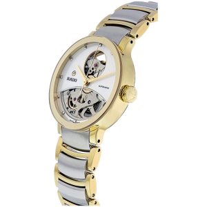 Корпус: Нержавеющая сталь/вакуумное напыление. Крышка корпуса из прозрачного сапфира. Диаметр 33 мм. Водонепроницаемость 30 метров. Циферблат белый, скелетированный. 7 diamonds,0,027carat, 5 diamonds,0,010carat.
