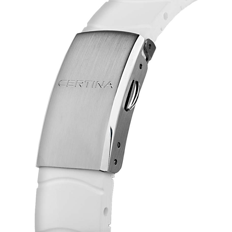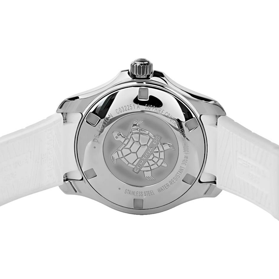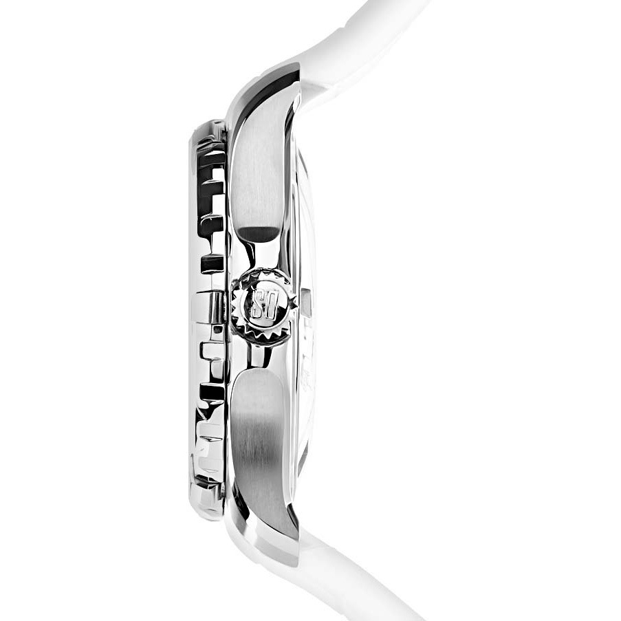 Корпус: Нержавеющая сталь. Сапфировое стекло с антибликовым покрытием. Белый циферблат, стальные стрелки и часовые индексы. Вращающийся безель. Диаметр 34,3 мм. Водонепроницаемость 300 метров.
