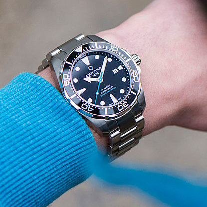 Корпус: Корпус из полированной/матовой нержавеющей стали. Люминесцентное покрытие на стрелках и разметке, однонаправленно вращающийся безель из анодированного алюминия, завинчивающаяся задняя крышка с логотипом Sea Turtle Conservancy, в виде черепахи.Сапфировое стекло антибликовое покрытие стекла, черный циферблат. Диаметр 43 мм. Водостойкость 300 м. Система DS.
