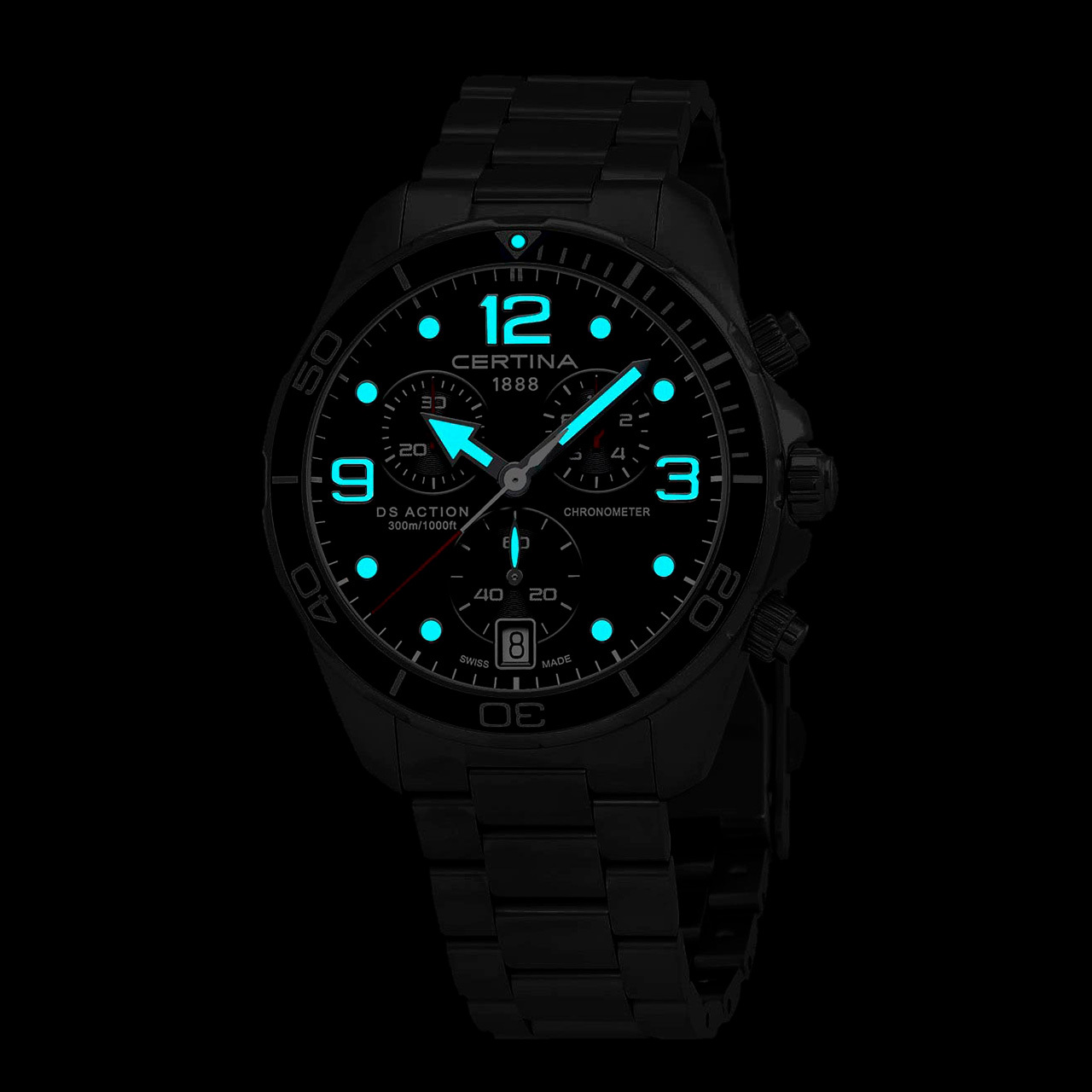 Корпус: Нержавеющая сталь марки 316L. Вращающийся алюминиевый безель. Чёрный циферблат. Стрелки и часовые индексы серебристого цвета покрыты люминесцентным составом SuperLuminova. Сапфировое стекло с антибликовым покрытием. Заводная головка завинчивается, уплотнители из резины защищают механизм от воды. Водонепроницаемость 300 метров. Диаметр 43 мм. Система DS.