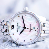Корпус: Корпус из полированной/матовой нержавеющей стали. Антибликовое покрытие сапфирового стекла. Перламутровый циферблат. Водостойкость: 100 м. Диаметр: 27,5 мм.