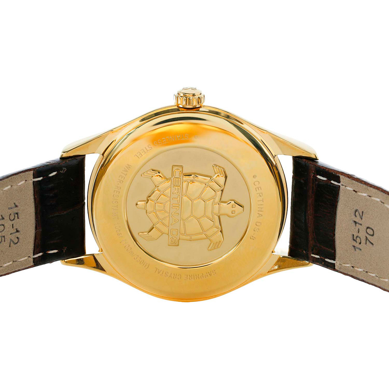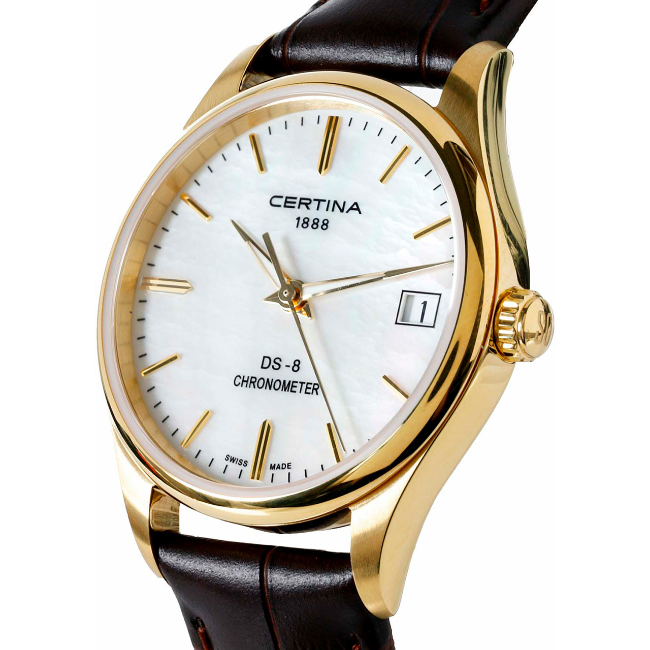 Корпус: Корпус из нержавеющей стали с PVD покрытием жёлтого золота. Белый перламутровый циферблат с золотистыми стрелками и рисками. Сапфировое стекло с антибликовым покрытием. Диаметр 30 мм. Водостойкость 100 м.
