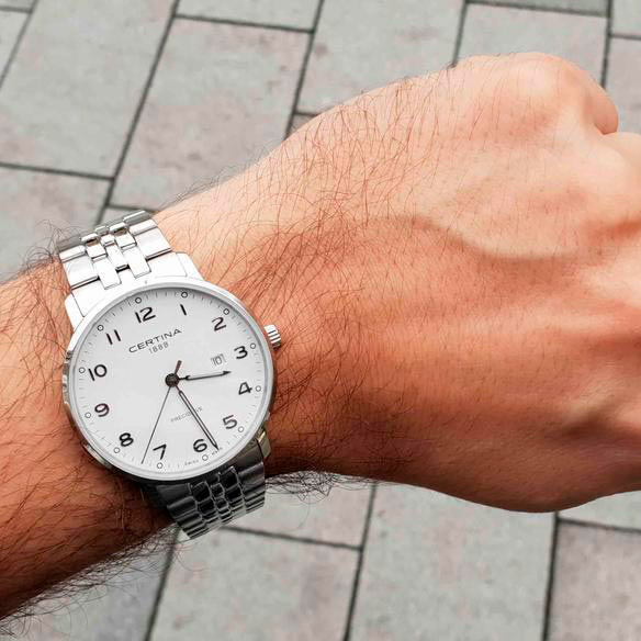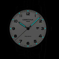 Корпус: Корпус модели выполнен из высококачественной стали марки 316L с повышенной устойчивостью к коррозии, поверхности с матовой шлифовкой – сатинированием и полировкой до зеркального блеска. Белый циферблат. Метки в виде арабских цифр. Метки и стрелки с люминесцентным покрытием, которое светится в темноте после непродолжительной зарядки на свету. Сапфировое стекло. Диаметр: 39 мм. Водостойкость: 100 м.