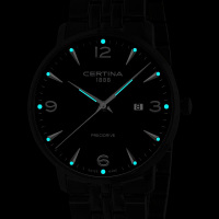 Корпус: Корпус из нержавеющей полированной/матовой стали. Серый циферблат. Стрелки и часовые индексы серебристого цвета с люминесцентным покрытием. Сапфировое стекло. Диаметр 39 мм. Водостойкость 100 м. Система DS.