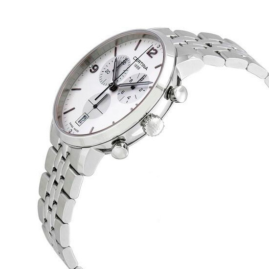 Функции: Индикация часов, минут при помощи центральных стрелок. Маленькая, отдельно вынесенная секундная стрелка. Дата в положении "6 часов". Хронограф.