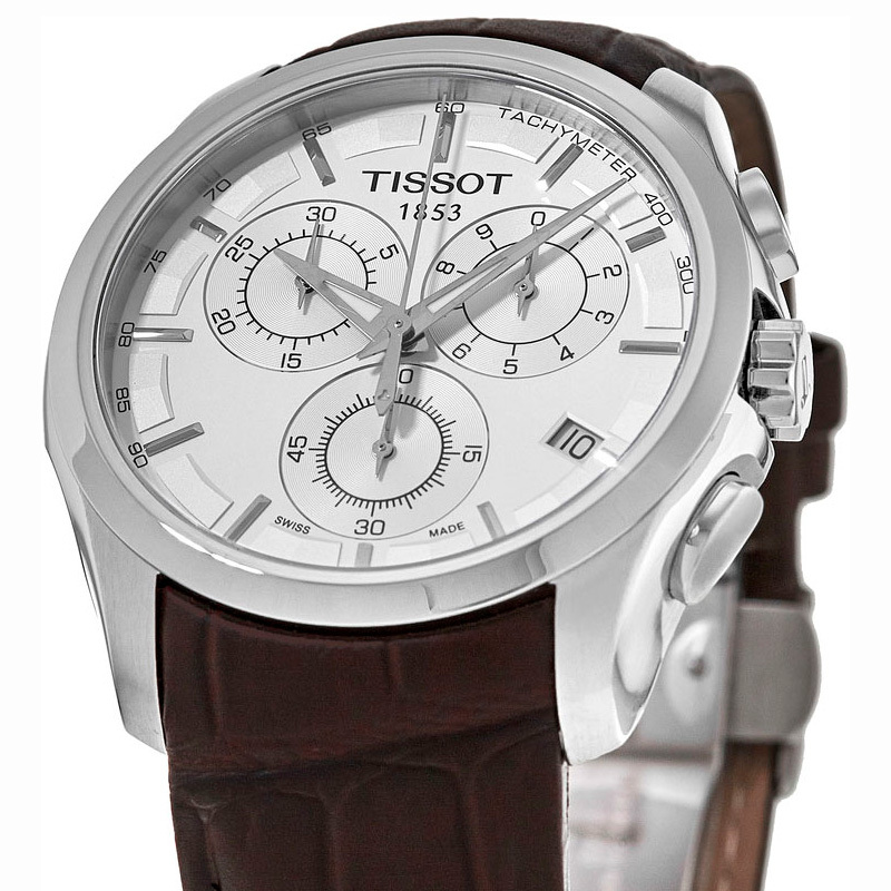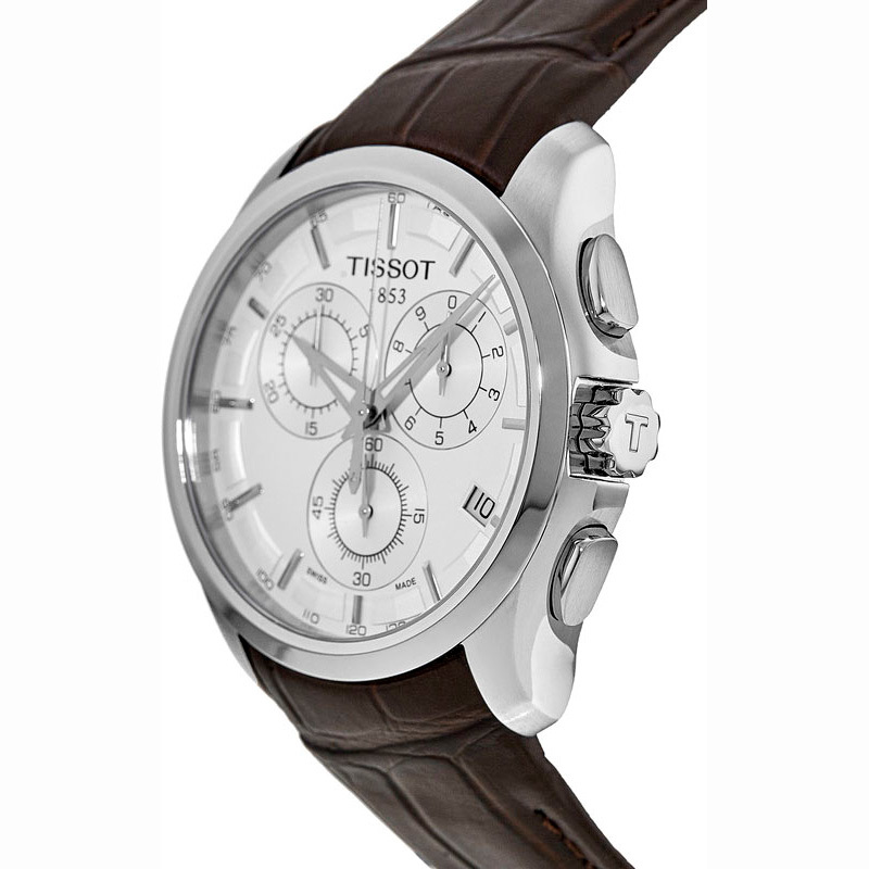Ремешок: Коричневый ремешок из телячьей кожи с тиснением под аллигатора. Браслетная застежка из нержавеющей стали, раскладывающаяся при нажатии кнопок двойной блокировки.