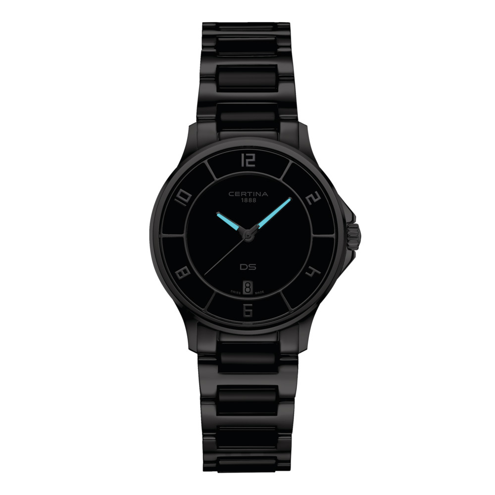 Ремешок: Браслет стальной с керамическими вставками чёрного цвета и раскладывающейся застежкой.