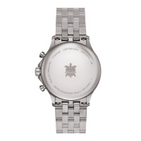Функции: Центральные часовая и минутная стрелки, секундная стрелка вынесена на отдельный циферблат. Окошко даты находится в положении 4 часов. Хронограф.