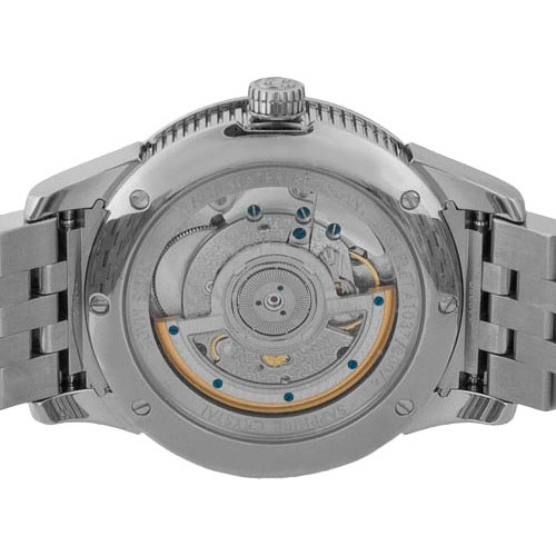 Корпус: Круглый корпус выполнен из высокосортной нерж. стали с зеркальной полировкой и матовой шлифовкой поверхностей. Циферблат черного/белого цвета с гильошированием. Арабские цифры чёрного цвета и стрелки-листок с покрытых родием и полировкой. Сапфировое стекло с повышенной устойчивостью к появлению царапин имеет антибликовое покрытие. Заводная коронка, украшена гравировкой с эмблемой марки. Задняя крышка с прозрачным окном соединяется с корпусом винтами. Водостойкость 3 АТМ. Диаметр корпуса составляет 40 мм.