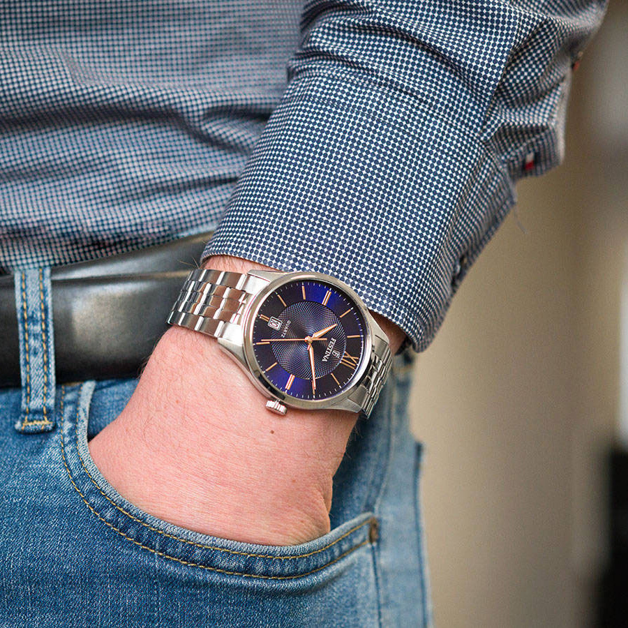 Ремешок: Надежный стальной браслет с раскладывающейся застежкой.