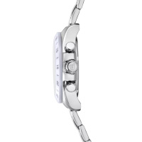 Корпус: Ударопрочный корпус часов сделан из нержавеющей стали. Перламутровый циферблат. Стрелки с нанесенным люминесцентным покрытием, которое светится в темноте после непродолжительной зарядки на свету. Минеральное стекло. Белый керамический безель. Рифленая заводная головка с защитой. Диаметр: 39 мм. Водонепроницаемость: 100 м.