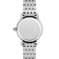Корпус: Корпус выполнен из нержавеющей стали. Перламутровый циферблат с часовыми индексами в виде штрихов и точек, украшен 8 бриллиантами 0,04К. Устойчивое к возникновению мелких механических повреждений сапфировое стекло. Заводная головка украшена камнем в форме кабошона. Диаметр корпуса 30 мм, толщина 8 мм. Водостойкость: 30 м (WR 30).