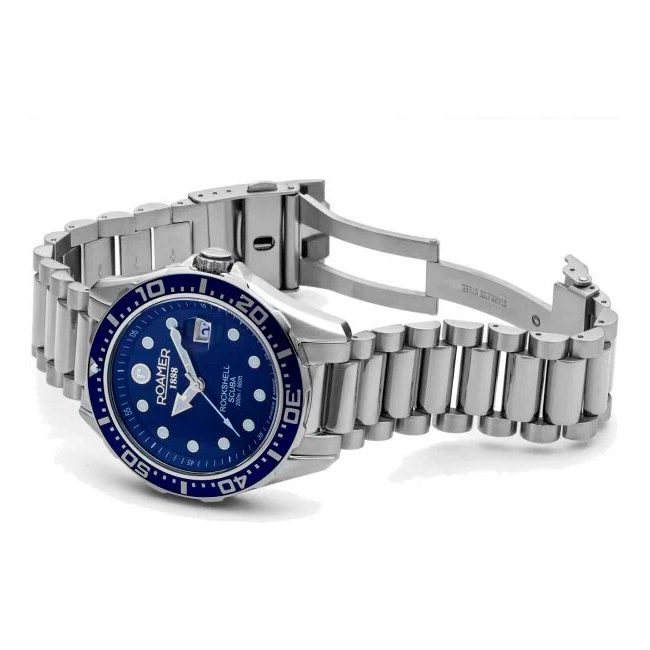 Корпус: Корпус выполнен из высококачественной нержавеющей стали 316L. Вращающийся безель имеет превосходную маркировку для идеальной читаемости. Синий циферблат с серебристыми часовыми индексами и стрелками.