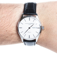 Корпус: Корпус из нержавеющей полированной стали. Металлик циферблат с серебристыми стрелками и рисками. Декор в технике гильоше. Сапфировое стекло. Диаметр 40 мм. Водозащита 50 м.