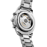 Функции: Индикация часов, минут при помощи центральных стрелок. Маленькая, отдельно вынесенная секундная стрелка. 30-ти минутный и 12-ти часовой счетчики хронографа, месяц, день недели, дата, фазы луны, дублирование времени в 24-часовом режиме в отдельном регистре.
