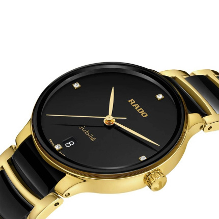 Корпус: Корпус изготовлен из полированной нержавеющей стали 316L с PVD-покрытием. Безель из чёрной керамики. Черный лакированный циферблат с 4 бриллиантами 0,01200 карат, подчеркнутый печатным логотипом «jubile», идеально сочетается со стрелками из желтого золота (покрытие). Часы оснащены изогнутым сапфировым стеклом с антибликовым покрытием. Рифленая заводная головка. Диаметр: 35 мм. Водостойкость: 50 м.