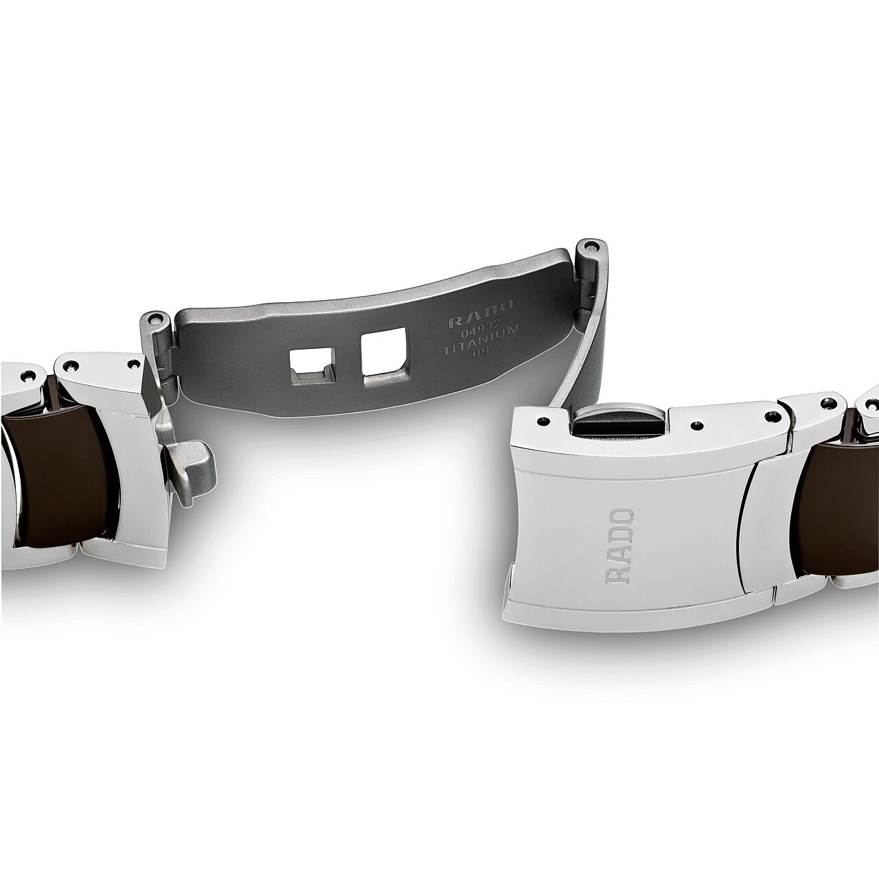 Ремешок: Высокотехнологичная керамика чёрного цвета и нержавеющая сталь. Раскладывающаяся титановая застежка с системой блокировки.