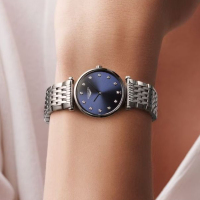 Корпус: Нержавеющая сталь, сапфировое стекло, 12 бриллиантов на циферблате. Размер 24 мм, водонепроницаемость 30 метров. Циферблат – синий.