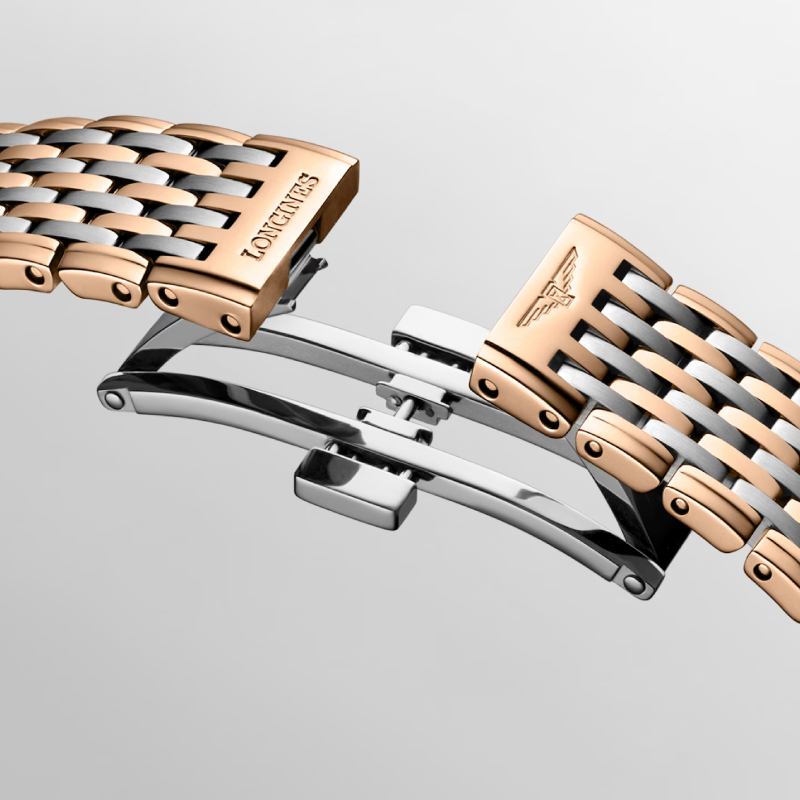Ремешок: Нержавеющая сталь + PVD-покрытие из розового золота.