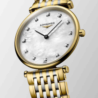 Корпус: Нержавеющая сталь + PVD-покрытие из желтого золота, сапфировое стекло, 12 бриллиантов на циферблате. Размер 29 мм, водонепроницаемость 30 метров. Циферблат – перламутровый белый.