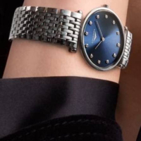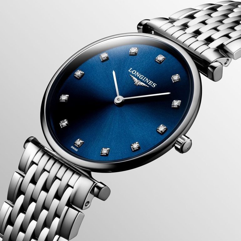 Корпус: Нержавеющая сталь, сапфировое стекло, 12 бриллиантов на циферблате. Размер 29 мм, водонепроницаемость 30 метров. Циферблат – синий.
