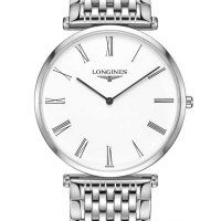 Корпус: Нержавеющая сталь, сапфировое стекло. Размер 37 мм, водонепроницаемость 30 метров. Циферблат – белый с римскими цифрами.