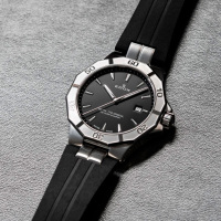 Корпус: Корпус из высококачественной нержавеющей стали. Чёрный циферблат. Часовые индексы и стрелки стальные, полированные с покрытием Super-LumiNova®. Сапфировое стекло с антибликовым покрытием. Однонаправленный безель вращается со щелчками в направлении против хода стрелок, рельефная поверхность с гравированной разметкой в виде больших цифр. Завинчивающаяся заводная головка. Диаметр 43 мм. Водонепроницаемость 200 м.