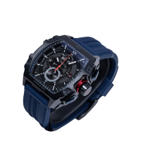 Корпус: Корпус выполнен из нержавеющей стали AISI 304, придающей часам особую прочность и стойкость от повреждений с IP покрытием. Основной особенностью этой модели являются акцентные детали: заводная головка и кнопки, внешний ободок циферблата. Часовые индексы и стрелки с покрытием SuperLuminova, которое обеспечивает подсветку в темное время суток. Циферблат многослойный, словно 3D, основа покрыта металлизированной пудрой, для придания эффекта шершавости. Упрочненное минеральное стекло Hardlex, разработанное компанией Seiko Watch Corporation, которое обладает высокой устойчивостью к ударам и царапинам. Размер корпуса 44х48 мм. Водонепроницаемость 50 м.