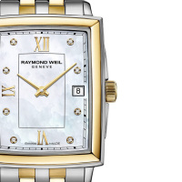 Ремешок: Браслет из высококачественной стали с 5 рядами литых звеньев с частичным покрытием цвета золота. Браслетная застежка, раскладывающаяся при нажатии на кнопки с двойной системой блокировки, украшена гравировкой Raymond Weil.