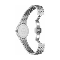 Корпус: Корпус круглой формы выполнен из нержавеющей стали марки 316L. Циферблат из натурального перламутра украшен в качестве часовых индексов инкрустацией 11 бриллиантов 8/8 - SI2 - SI1, общим весом 0,04 карата. Сапфировое стекло имеет повышенную устойчивость к возникновению царапин. Диаметр корпуса модели составляет 29 мм, толщина - 6.79 мм. Водостойкость 50 метров.