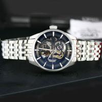 Корпус: Многокомпонентный корпус из нержавеющей стали. Скелетон. Черное циферблатное кольцо, часовая шкала. Сапфировое стекло, выпуклое с обеих сторон, внутреннее антибликовое покрытие. Диаметр 39 мм. Водонепроницаемость 100 метров.