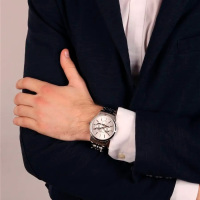 Корпус: Корпус выполнен из высококачественной стали с повышенной устойчивостью к коррозии, поверхности с матовой шлифовкой – сатинированием и полировкой до зеркального блеска. Серебристый циферблат. Накладные часовые индексыв и стрелки выполненый из стали. Стрелки с покрытием SuperLuminova, которое обеспечивает подсветку в темное время суток. Сапфировое стекло устойчивое к возникновению царапин. Диаметр корпуса составляет 42 мм, толщина 9 мм. Водостойкость WR 50 (мытье рук, дождь).