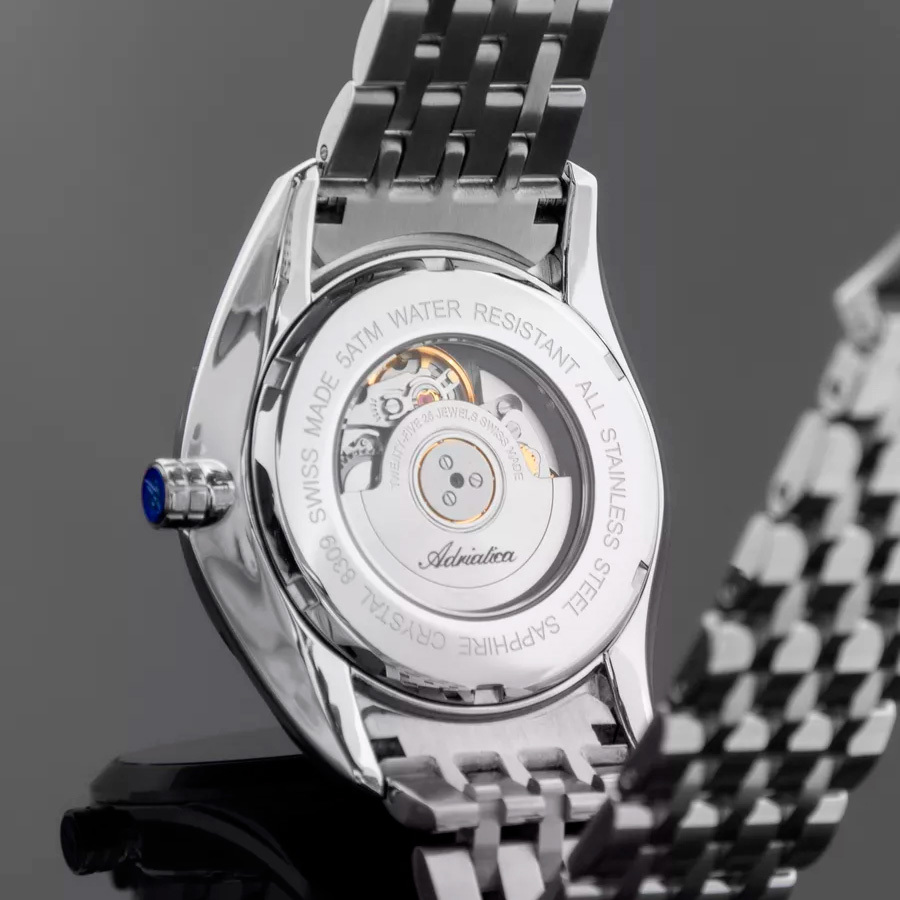 Механизм: Механические с автоподзаводом, калибра Ronda 150. Запас хода 40 ч.