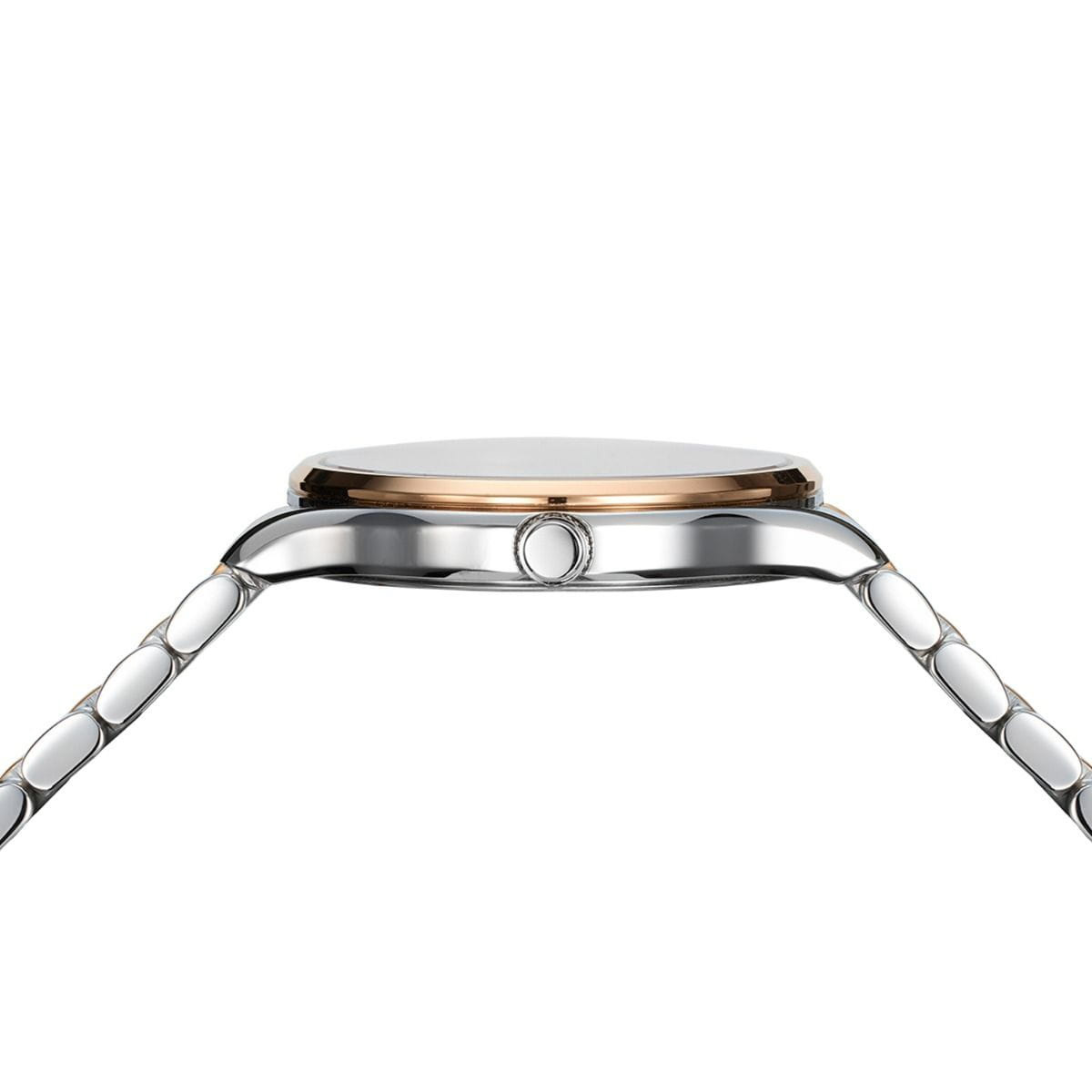 Ремешок: Браслет выполнен из нержавеющей стали с частичным PVD - покрытием розового золота. Браслет оснащен застежкой-бабочкой с кнопкой блокировки.