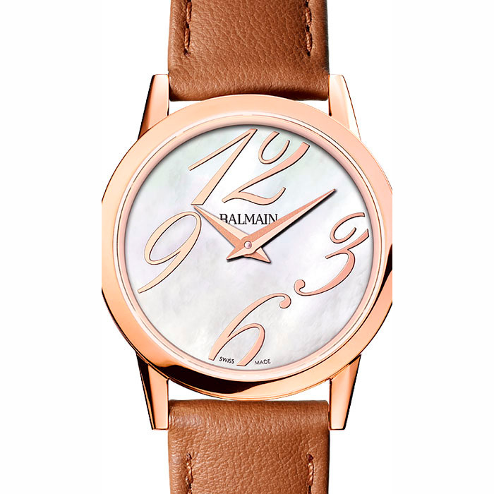 Корпус: Нержавеющая сталь с PVD - покрытием цвета розового золота. Циферблат перламутровый с позолоченными стрелкамии и часовыми индексами. Циферблат защищен высокопрочным сапфировым стеклом. Заводная головка украшена камнем в форме кабошона. Диаметр: 31 мм. Водостойкость: 50 м.
