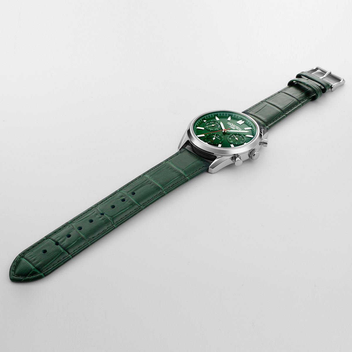 Корпус: Корпус выполнен из высококачественной нержавеющей стали 316L. Зелёный циферблат sunray. Серебристые часовые индексы и стрелки с люминесцентным покрытием для оптимальной разборчивости в условиях низкой освещенности. Устойчивое к царапинам сапфировое стекло с антибликовым покрытием. Диаметр: 43 мм. Водозащита: 100м.