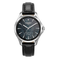 Корпус: Корпус выполнен из высококачественной нержавеющей стали 316L с полировкой и матовой шлифовкой - сатинированием. Перламутровый циферблат чёрного цвета, серебристые стрелки и часовые индексы. Стрелки с люминесцентным покрытием для оптимальной разборчивости в условиях низкой освещенности. Сапфировое стекло с антибликовым покрытием. Диаметр: 36 мм. Водозащита: 50 м.