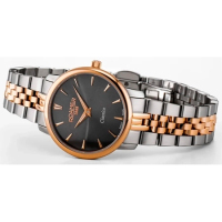 Ремешок: Браслет из высококачественной нержавеющей стали с повышенной устойчивостью к коррозии, поверхности с матовой шлифовкой – сатинированием и полировкой до зеркального блеска с частичным IP покрытием из розового золота. Раскладывающаяся стальная застежка "бабочка" .