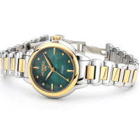Корпус: Корпус из нержавеющей полированной стали с частичным IP покрытием. Зелёный перламутровый циферблат с серебристыми стрелками. Сапфировое стекло, устойчивое к царапинам с антибликовым покрытием. Диаметр 32 мм. Водонепроницаемость 30 м.