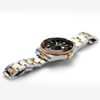Корпус: Корпус выполнен из высококачественной нержавеющей стали 316L с частичным покрытием жёлтого золота. Цвет безеля для дайвинга, изготовленного из высококачественной устойчивой к царапинам керамики, соответствует цвету циферблата. Чёрный циферблат, позолоченные стрелки и часовые индексы с люминесцентным покрытием Super-LumiNova для оптимальной разборчивости в условиях низкой освещенности. Сапфировое стекло с антибликовым покрытием. Завинчивающаяся заводная головка с защитой. Прозрачная задняя крышка позволяет увидеть сложный механизм. Диаметр: 42 мм. Водозащита: 200 м.