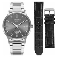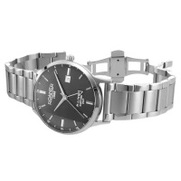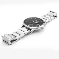 Ремешок: Браслет из нержавеющей стали с литыми звеньями, браслетная застежка с тройным сложением – «бабочка». В комплект часов входит дополнительный кожаный ремешок, который вы можете заменить с помощью удобной кнопки, без необходимости использования инструмента. Часы поставляются в специальной подарочной упаковке.