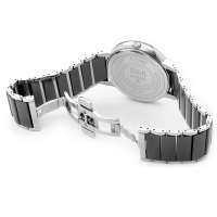 Ремешок: Часы оснащены металлическим браслетом в цвет корпуса с черными керамическими вставками. Браслетная застежка с тройным сложением – «бабочка».