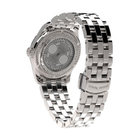 Корпус: Корпус из нержавеющей стали. Перламутровый голубой циферблат, украшен декоративным узором - гильоше и защищен практичным сапфировым стеклом устойчивым к механическим повреждениям. Механизм усложнен функцией – индикатором фазы луны, расположенной в районе двенадцатичасовой отметки. Диаметр 34 мм. Водозащита 100 м.