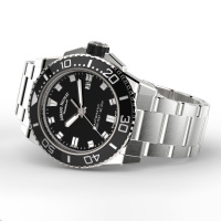 Корпус: Корпус из нержавеющей полированной/матовой стали, керамический безель. Чёрный циферблат с серебристыми стрелками и часовыми индексами. Светонакопительный состав на стрелках и часовых индексах. Сапфировое стекло с антибликовым покрытием. Диаметр 44 мм. Водозащита 300 м.