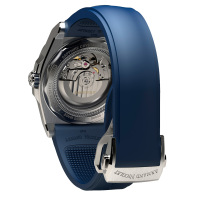 Корпус: Нержавеющая сталь марки 316 L. Гильошированный циферблат синего цвета. Стрелки и часовые индексы серебристого цвета покрыты люминесцентным составом SuperLuminova. Прозрачная задняя крышка. Сапфировое стекло с антибликовым покрытием. Диаметр: 41 мм. Водонепроницаемость: 50 метров.
