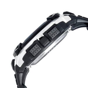 Функции: Цифровой дисплей. Модель часов поддерживает мировое время (универсальное глобальное время по Гринвичу, 31 часовой пояс, 48 городов, с возможностью запоминания времени в четырех разных городах), полный автоматический календарь, рассчитанный до 2099 года, пять независимых будильников, способных оповещать сигналом ежечасно. 1/100 секундомер. Таймер обратного отсчета времени. 12/24 часовой форматы отображения времени.