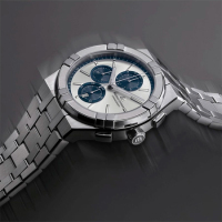 Корпус: Круглый корпус выполнен из нержавеющей стали, поверхности с матовой шлифовкой сатинированием и глянцевой полировкой. Циферблат серебристого цвета с шлифовкой в стиле «солнечные лучи», вспомогательные индикаторы хронографа синего цвета с гильошированием в виде спиральных узоров. Аппликация часовых индексов и стрелки с алмазной огранкой имеют серебристое покрытие и полировку до зеркального блеска. Фотолюминесцентный состав SLN на стрелках, светящийся в темноте. Сапфировое стекло с антибликовым покрытием защищает циферблат от царапин и обеспечивает отличную читаемость при любом освещении. Диаметр корпуса составляет 42 мм, толщина - 11 мм. Водозащита до 10 ATM (100 метров) делает часы подходящими для плавания.