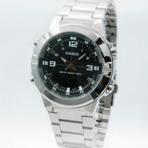 Функции: Аналогово - цифровое отображение текущего времени. Секундомер с точностью показаний 1/100 сек и максимальным временем измерения - 24 час. Таймер обратного осчета. 3 ежедневных будильника. Функция повтора сигнала будильника (Snooze). Автоматический календарь. Записная телефонная книжка для хранения фамилий и номеров телефонов. Максимальная емкость - 30 абонентов. Электронный циферблат подсвечивается светодиодом.