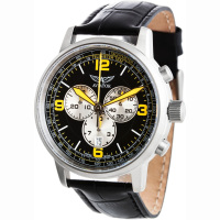 Функции: Индикация часов, минут при помощи центральных стрелок. Маленькая, отдельно вынесенная секундная стрелка. Дата в положении "6 часов".  Хронограф.